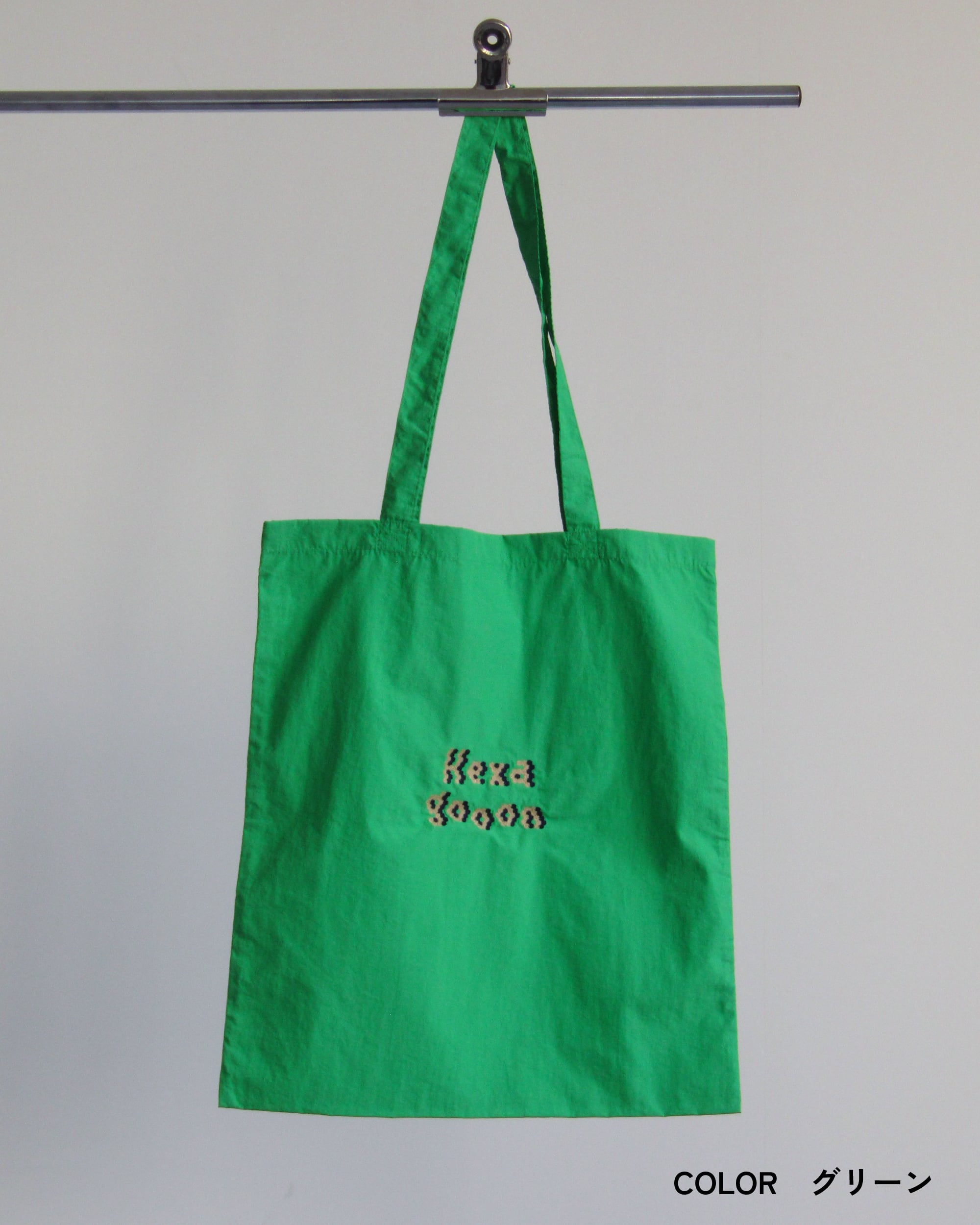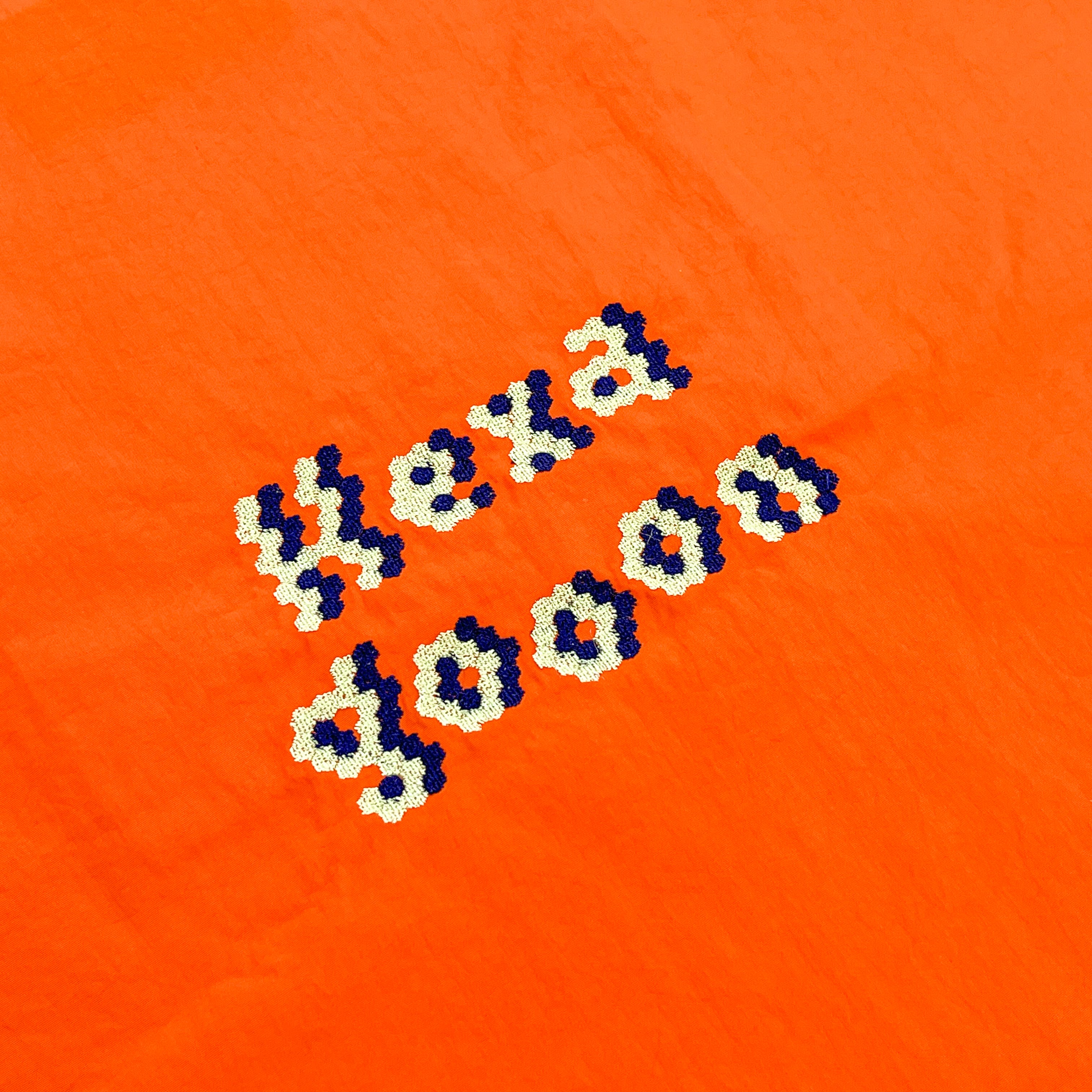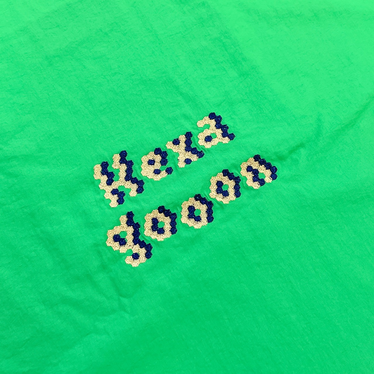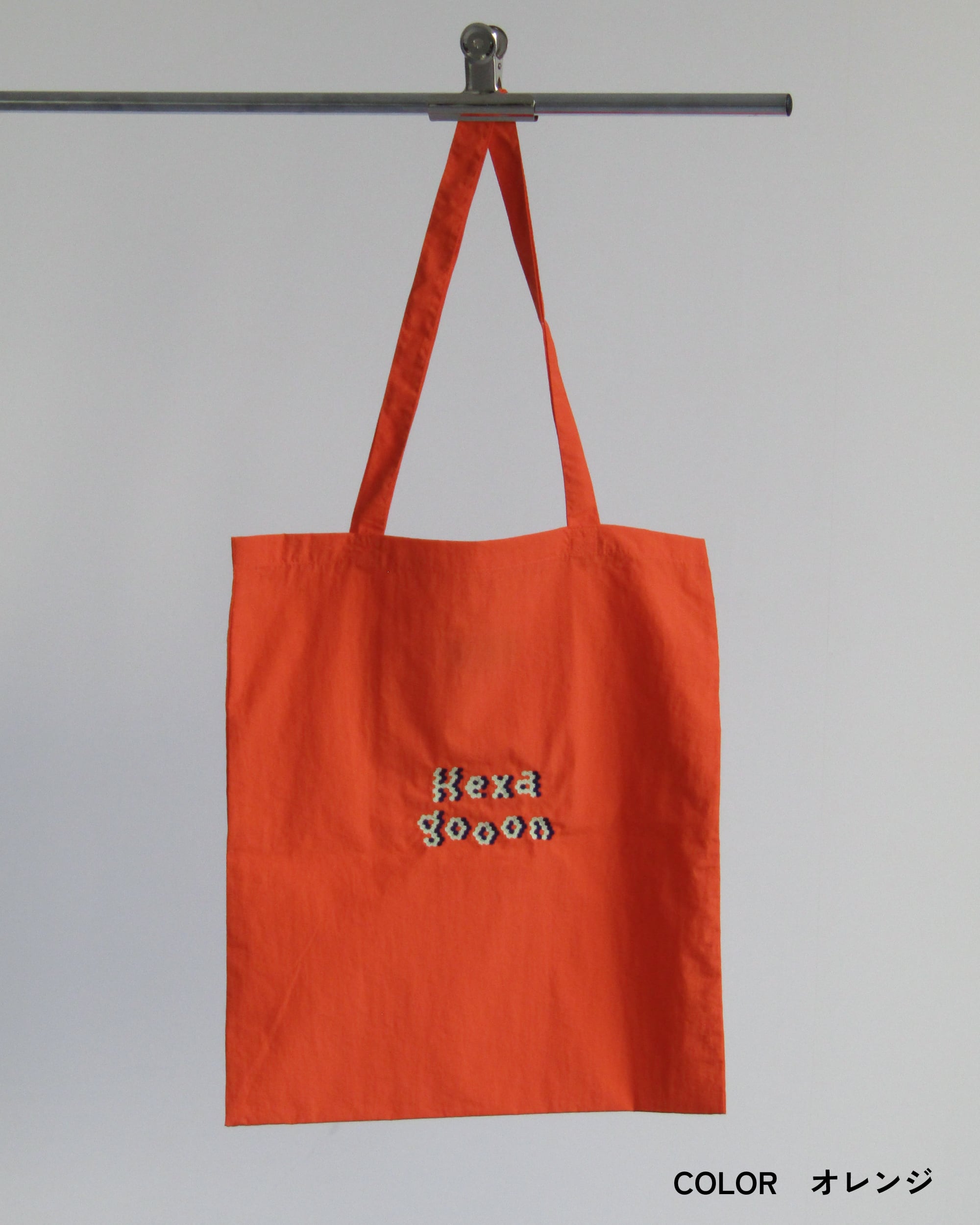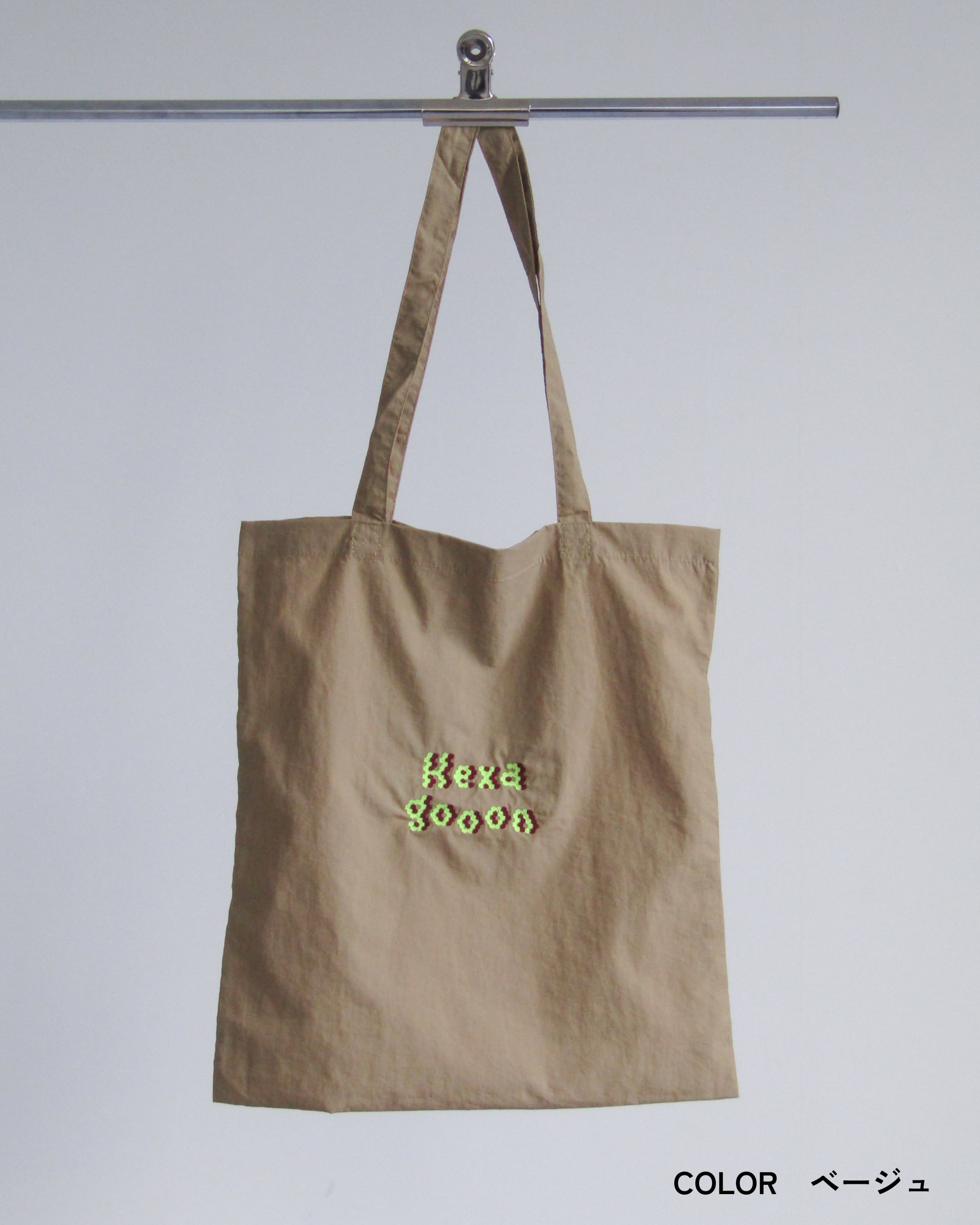 表面には「Hexagooon」の文字を六角形で構成した刺繍を施した使いやすいプチユーモアデザイン。