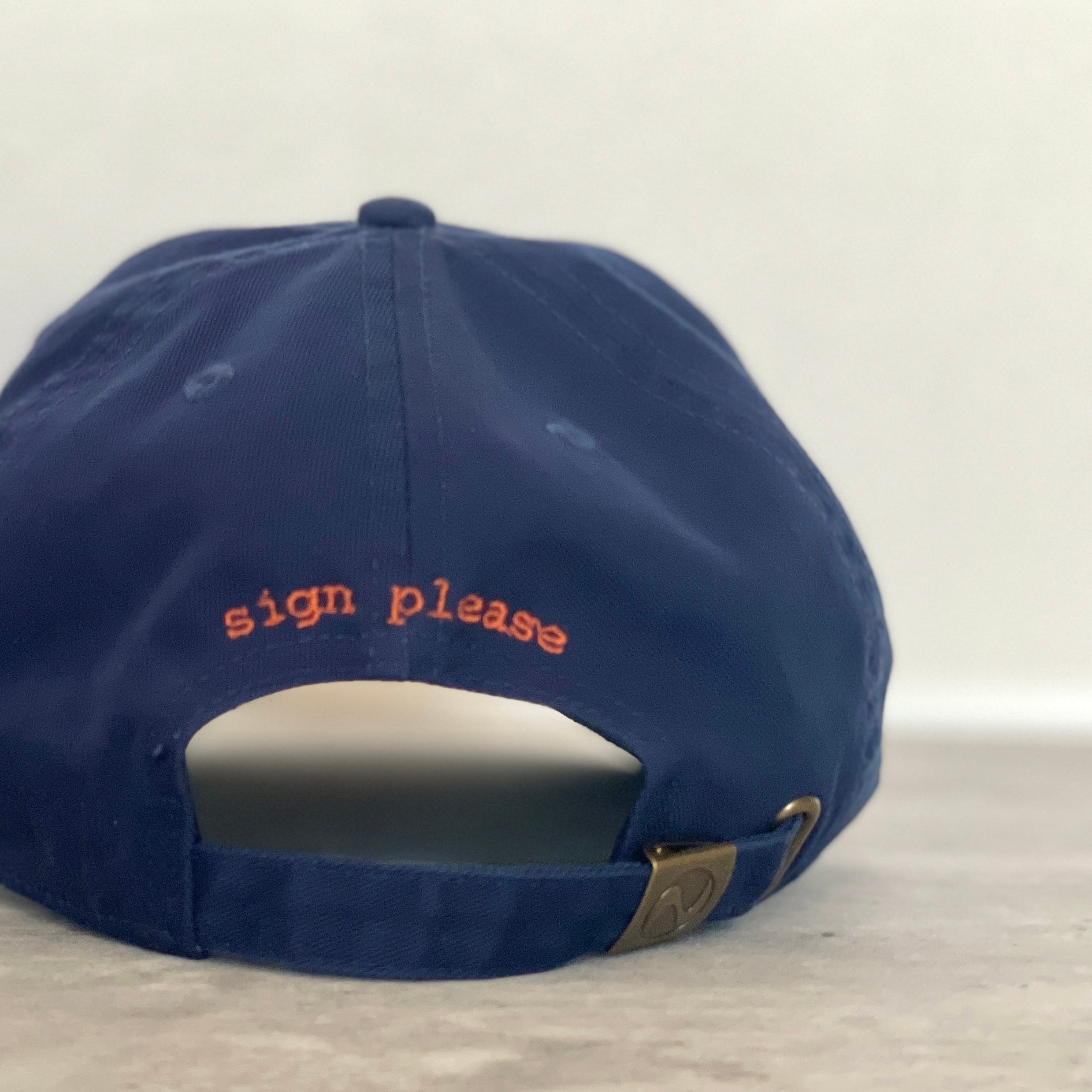 キャップの背面には、「sign please」の刺繍。